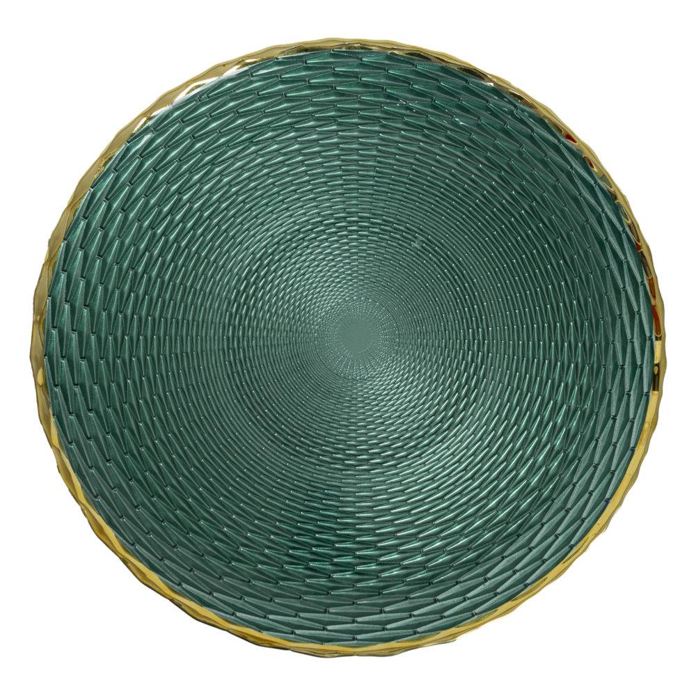 PLATO BASE VERDE ESMERALDA BORDE DORADO