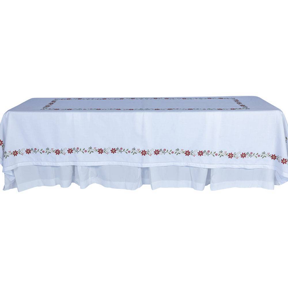 TOPE LINO BLANCO BORDE FLORES DE PASCUA NAVIDAD